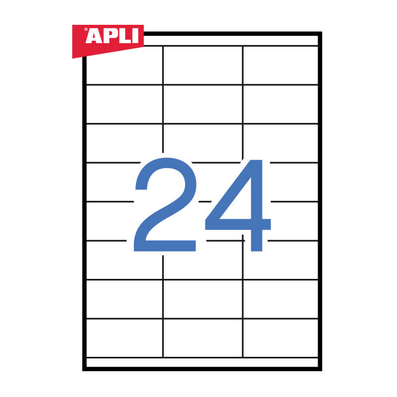 Etiketiniai lipdukai APLI Tinka rašaliniams ir lazeriniams spausdintuvams, kopijavimo aparatams. Matmenys 70 x 35 mm. Lape 24 lipdukai. Dėžutėje 100 lapų. Paprastas ir efektyvus etikečių spausdinimas su APLI Soft Pro SE- atsisiųskite nemokamai iš www.apli.com