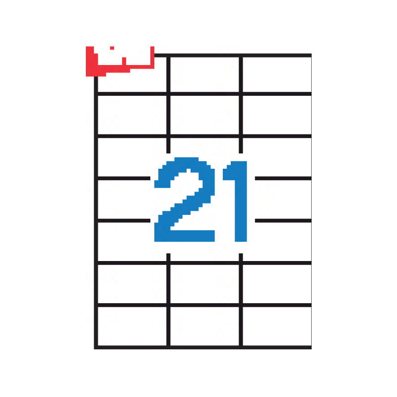 Tinka rašaliniams ir lazeriniams spausdintuvams, bei kopijavimo aparatams. Baltos spalvos. Matmenys 70x42,4 mm. A4 formatas. Lape 21 lipdukas. 100 lapų pakuotėje.
