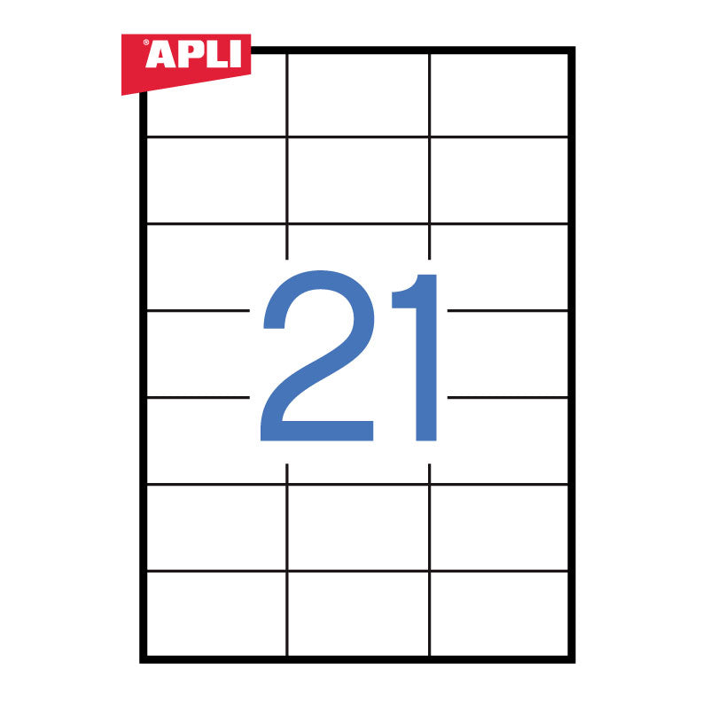 Lipnios etiketės APLI, 70 x 42,4 mm, A4, 21 lipdukai lape, 100 lapų, balta