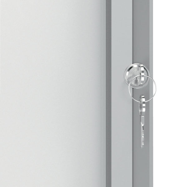 Lauko oro sąlygoms atspari rakinama skelbimų lenta su varstomomis apsauginio stiklo durimis ir šonine spyna;