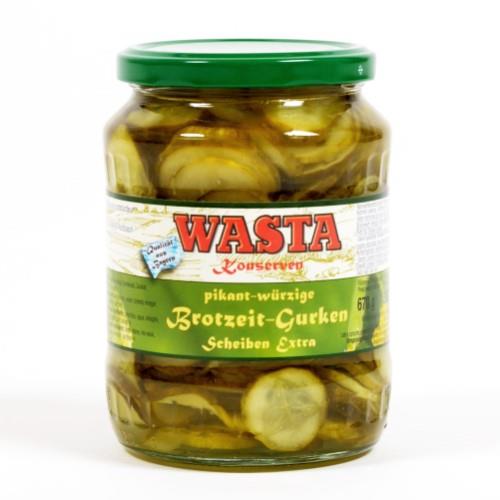 Marinuotų agurkėlių griežinėliai, su cukrumi ir saldikliu, 670 ml