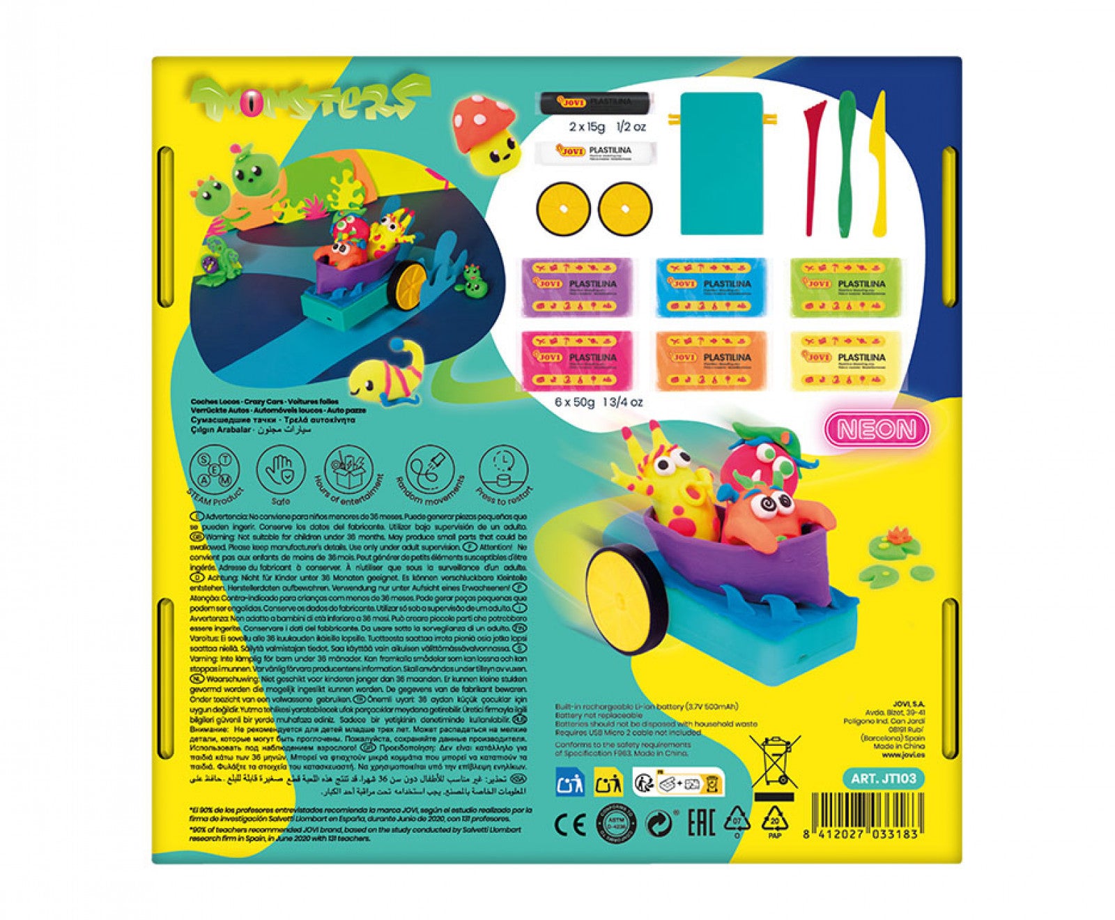• MONSTRŲ rinkinį sudaro 6 skirtingų spalvų (50 gr.) + 2 juodos ir baltos spalvos (15 gr.) plastilino gabalėliai,