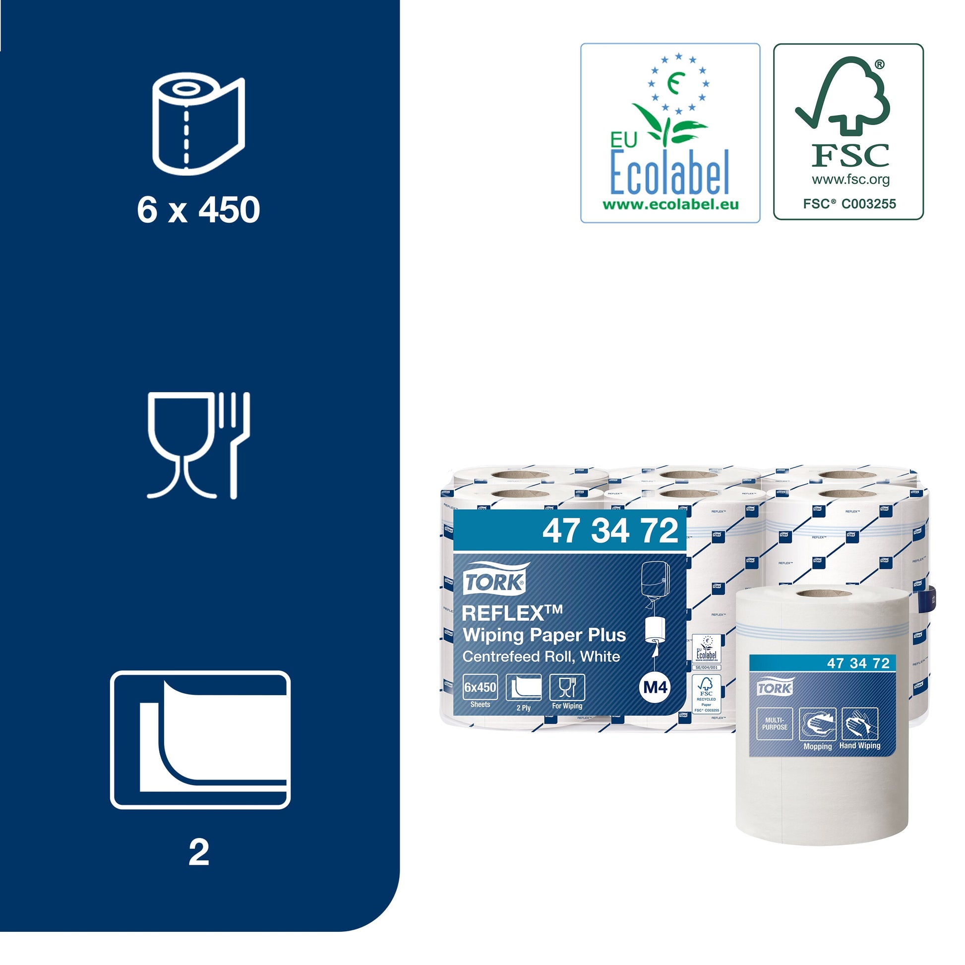 Popieriniai rankšluosčiai TORK, 473472, Reflex M4, 2 sl., 19.4 x 33.5 cm, 151 m/rul., balta sp.