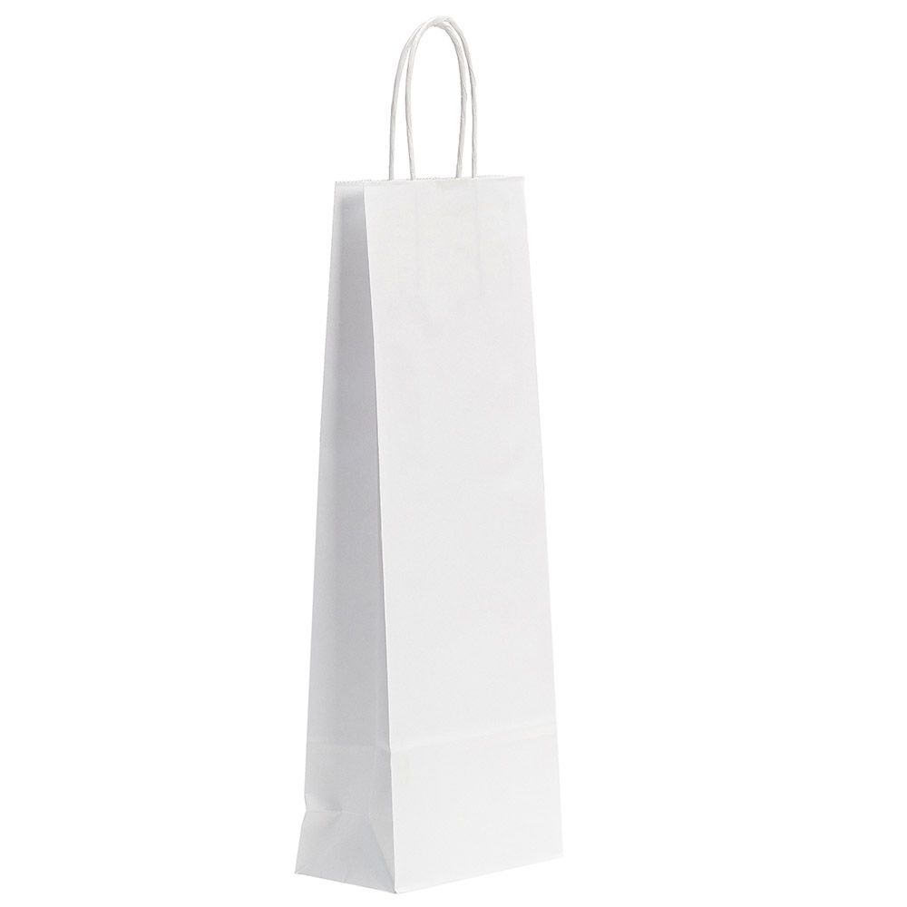 Popierinis maišelis buteliui TWIST, 140x80x390 mm, baltas