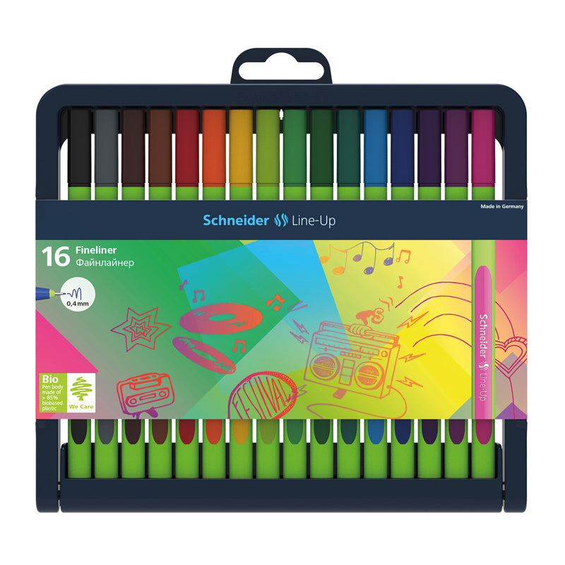 Rašikliai SCHNEIDER LINE-UP 0.4 mm, žalias korpusas, 16 spalvų rinkinys