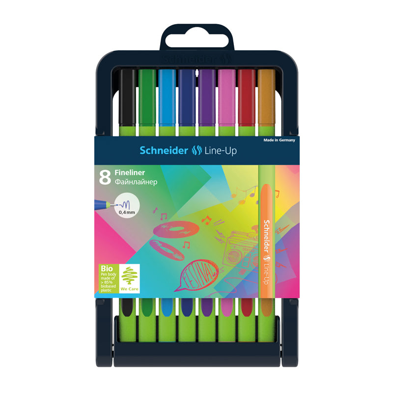 Rašikliai SCHNEIDER LINE-UP 0.4 mm, žalias korpusas, 8 spalvų rinkinys