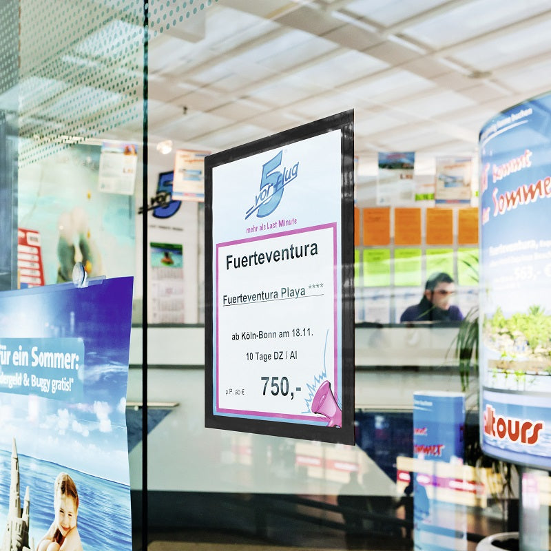 • Priklijuojami rėmeliai informacijai skelbti • Galima rinktis A4 arba A3 formatą • Lengvai pakeičiama medžiaga • Tinka lygiems stikliniams paviršiams
