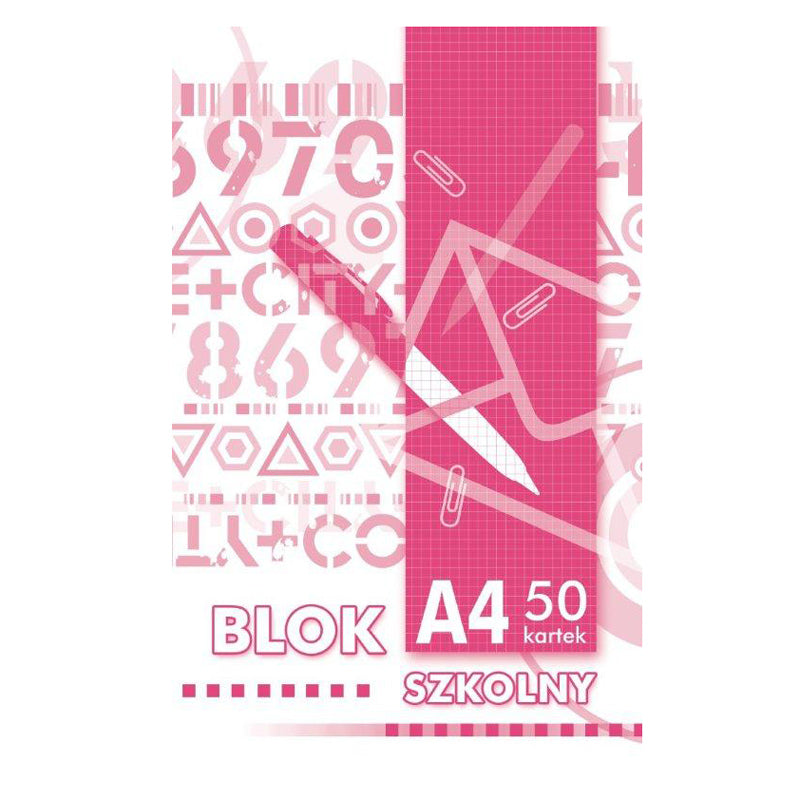 Kreska bloknotas klijuotas viršuje. A4 formatas. Langeliais. Popieriaus storis 55g/m2. 50 lapų. Dėžutėje 20 vnt.