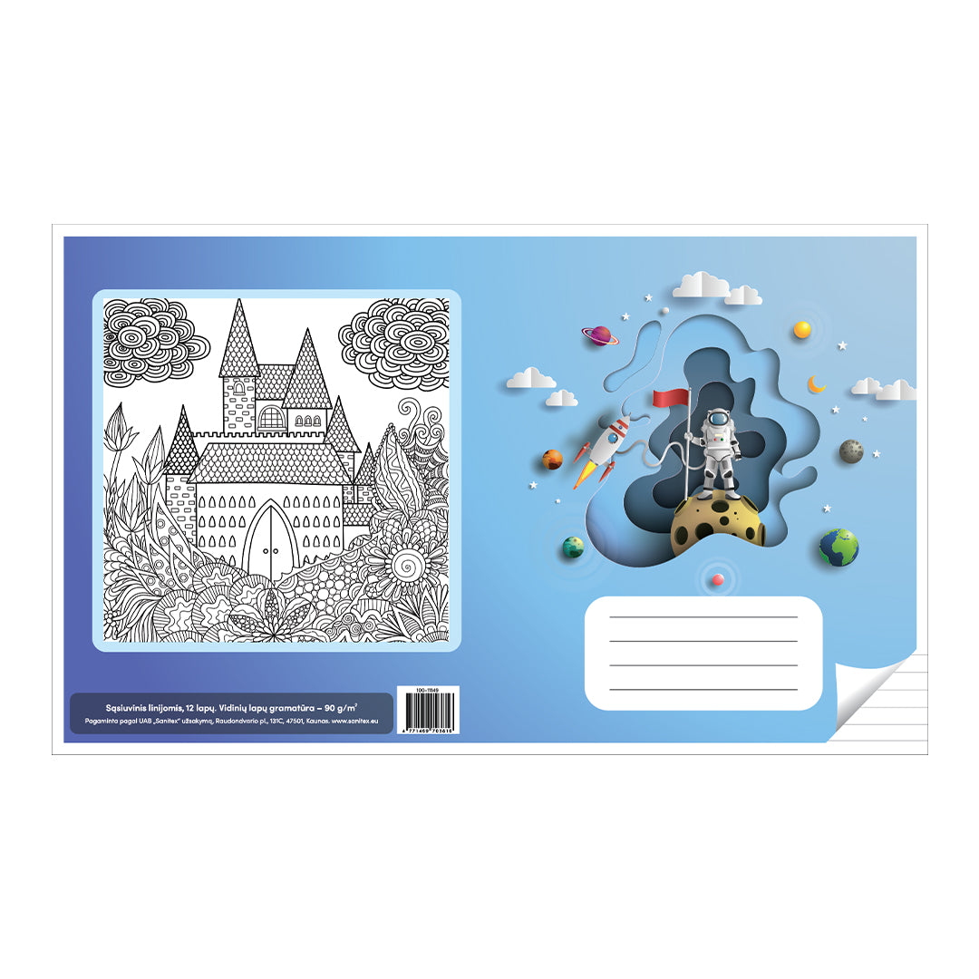 Sąsiuvinis linijomis 12 lapų. Vidinių lapų gramatūra – 90 g/m2.