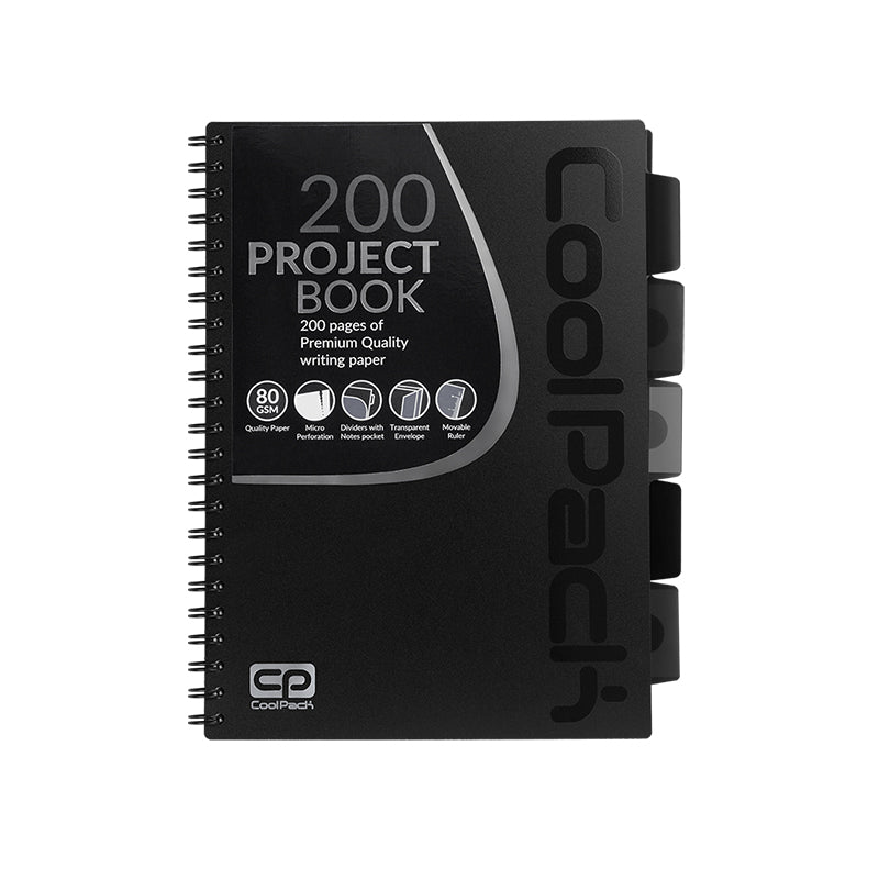 Sąsiuvinis PATIO, langeliais, su spirale, A4, 200 psl., juoda sp.