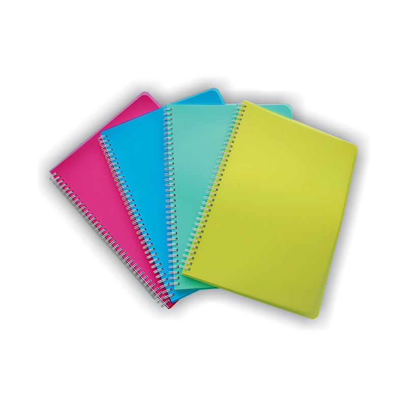 Bloknotas su spirale. A5 formatas. 96 lapai. Langeliais. Įvairių spalvų plastikiniai skaidrūs viršeliai.