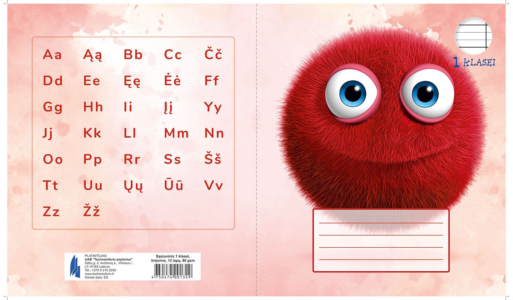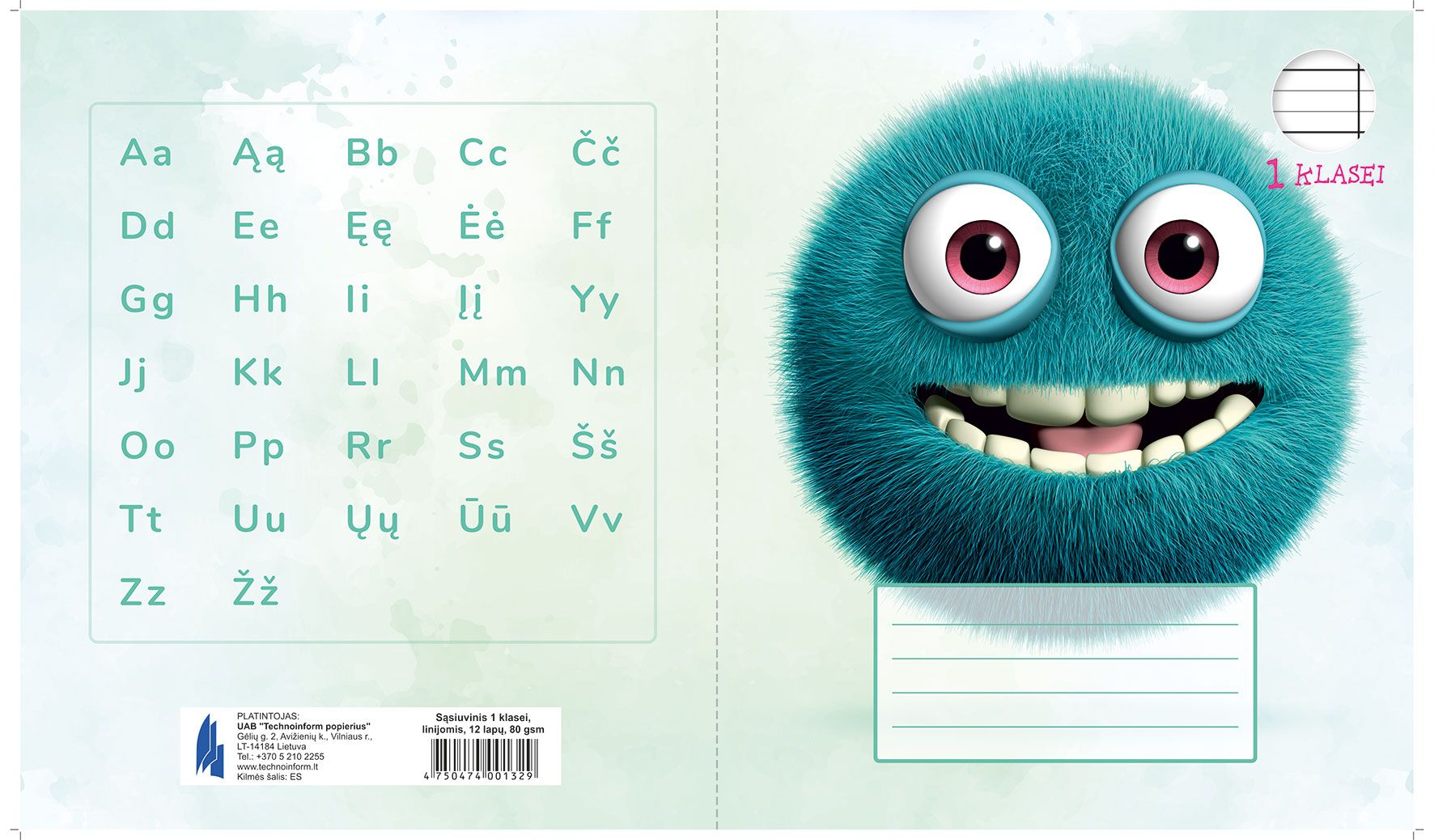 Sąsiuvinis TECHNOINFORM, 1 klasei, A5, 12 lapų, 80 gsm, linijomis