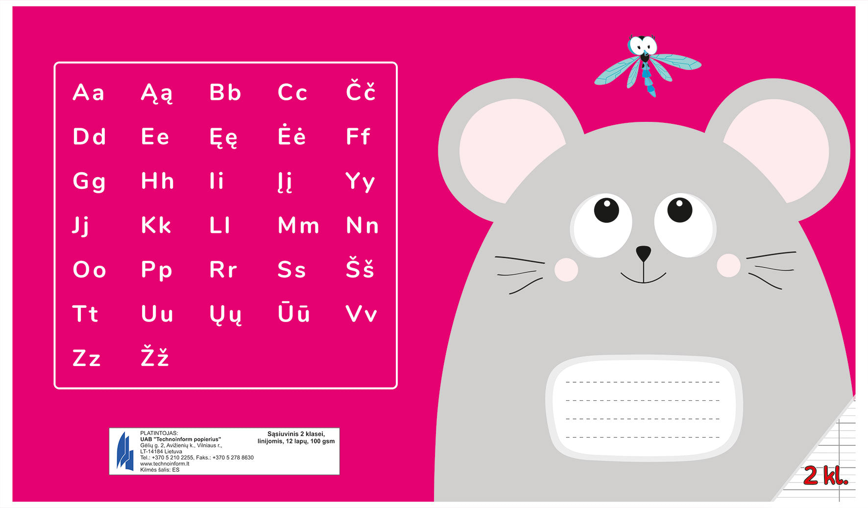 Sąsiuvinis TECHNOINFORM, 2 klasei, A5, 12 lapų, 100 gsm, linijomis