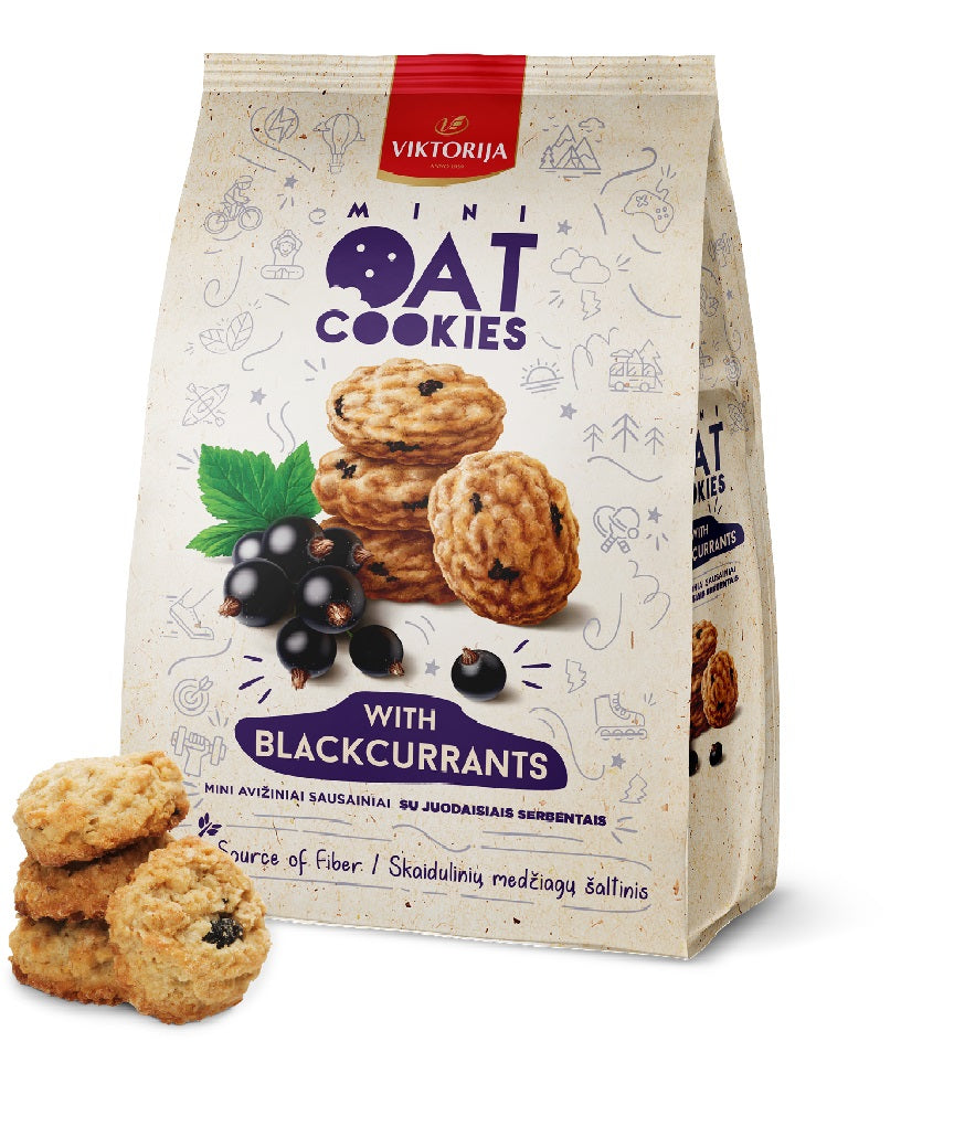 Sausainiai avižiniai, mini su juodaisiais serbentais, 250g