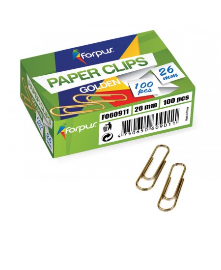 Idealiai tinka kasdieniniam naudojimui biure. Tvirtai suspaudžia popierių. Geltono metalo spalvos. Ilgis 26 mm. Dėžutėje 100 vienetų.