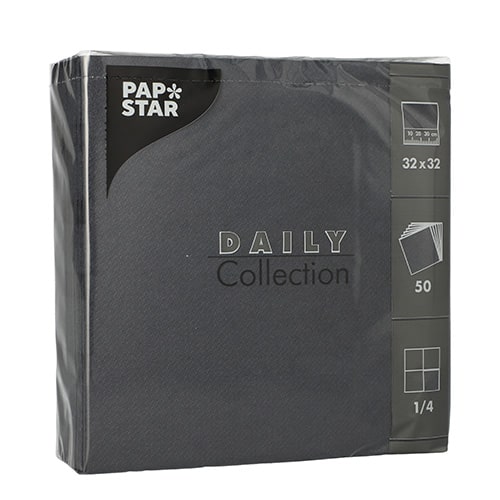 Servetėlės DAILY, 1/4 lankstymo, 32 x 32 cm, juodos spalvos, 50 vnt.