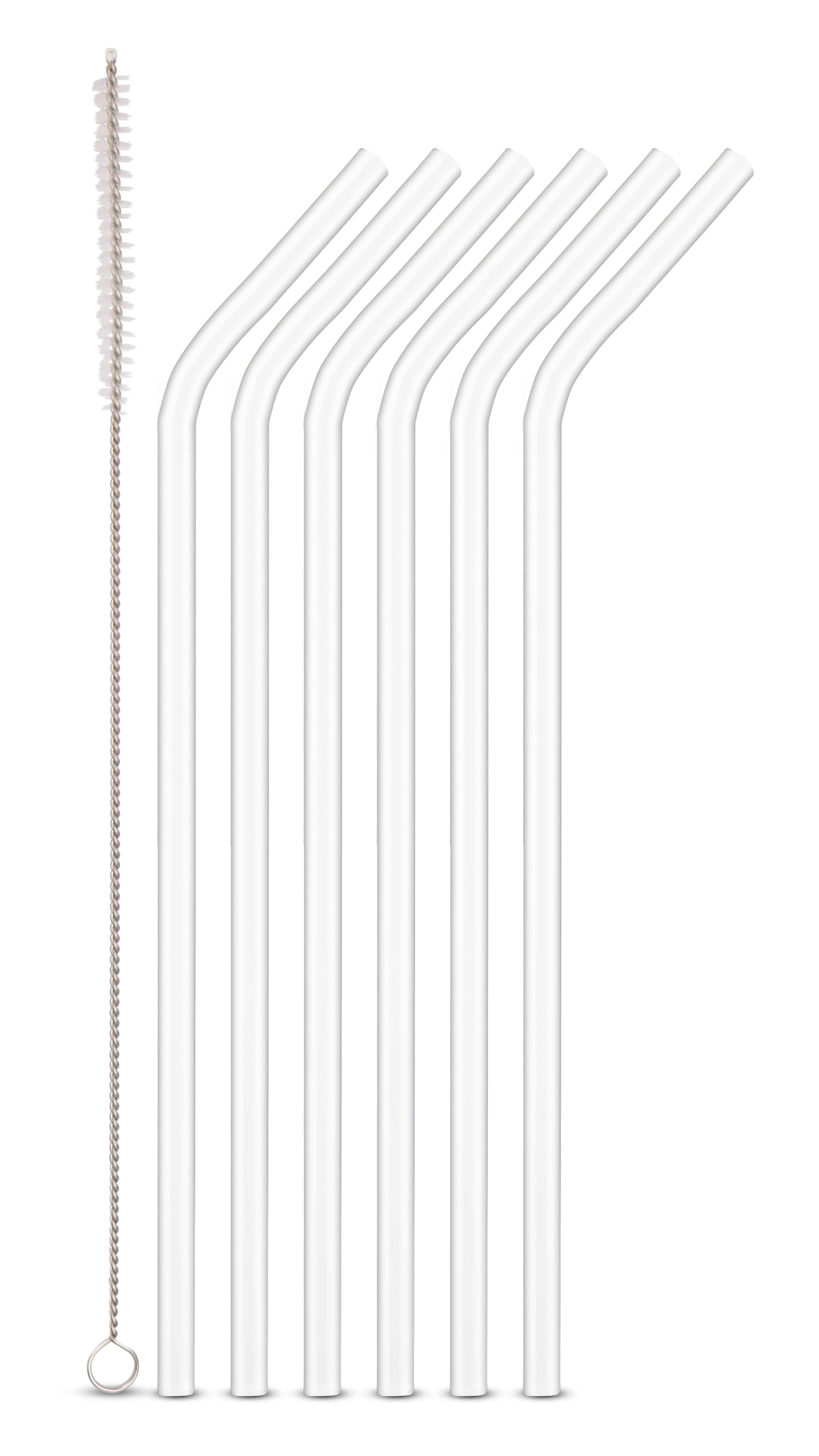 Šiaudeliai Glass, su šepetėliu, lenkti, borosilikatinis stiklas, D 8 mm, L 24 cm, 6 vnt