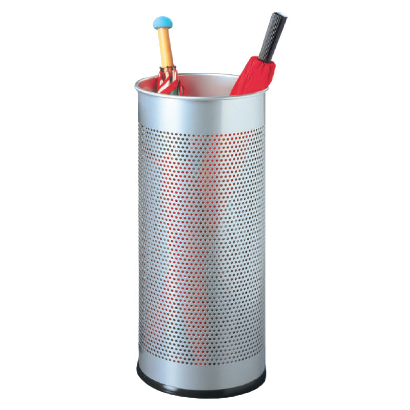 Šiukšlių dėžė - dėžė skėčiams. Metalinė. Aukštis - 620 mm, plotis -260 mm. Sidabrinės spalvos.