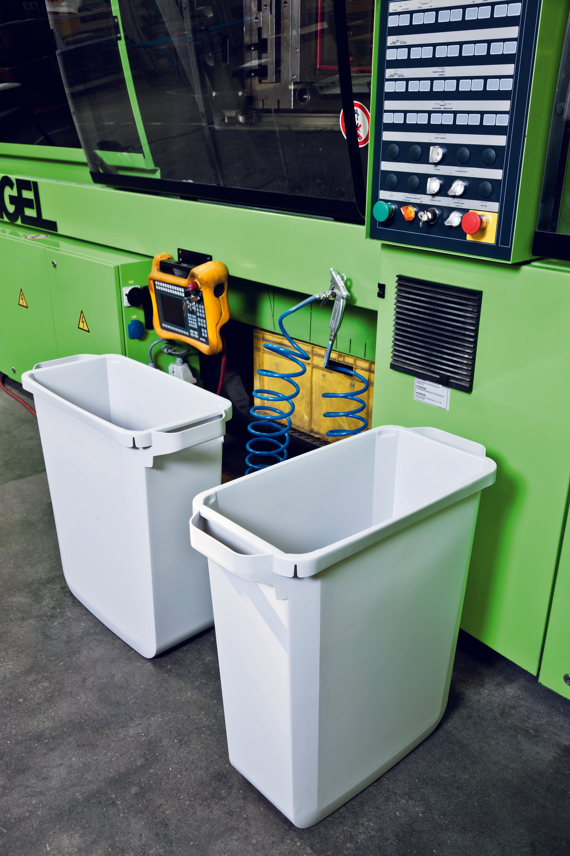 • Stačiakampis atliekų ir perdirbimo konteineris pagamintas iš plastiko.