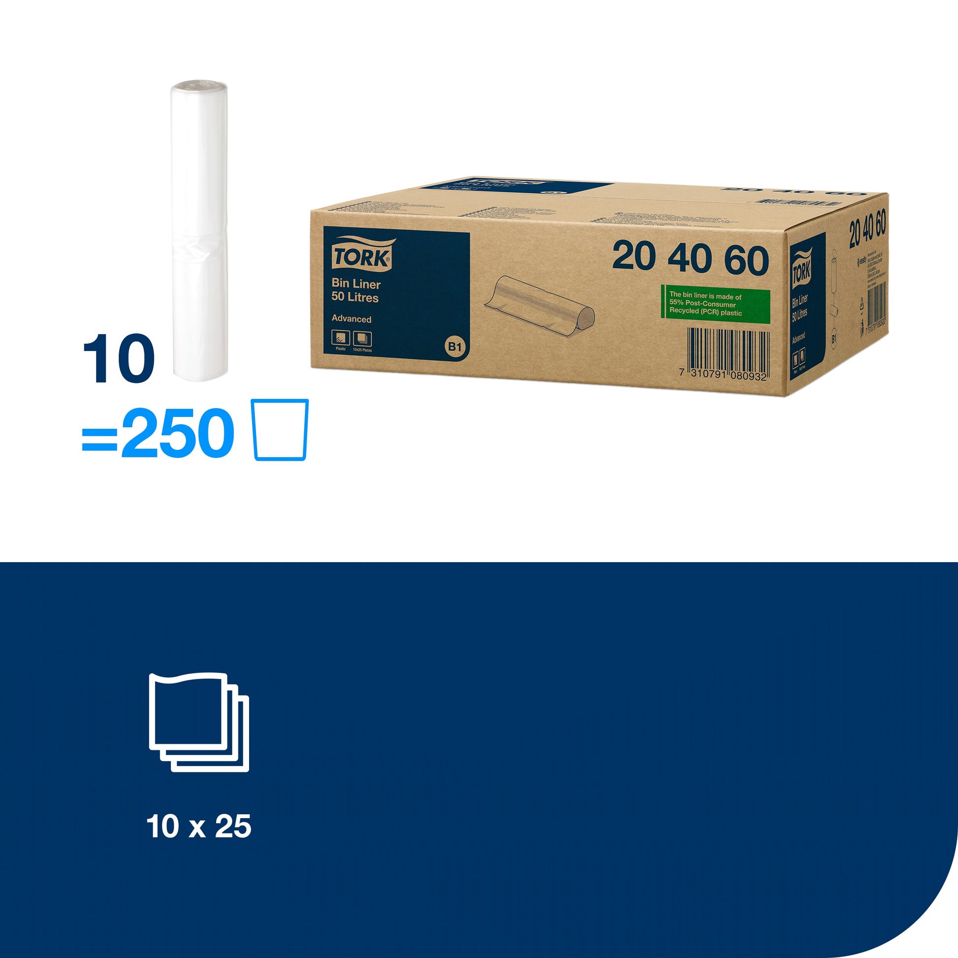 Šiukšlių maišai skirti TORK B1 šiukšliadėžėms, 50 L, 25 vnt, balti, 204060