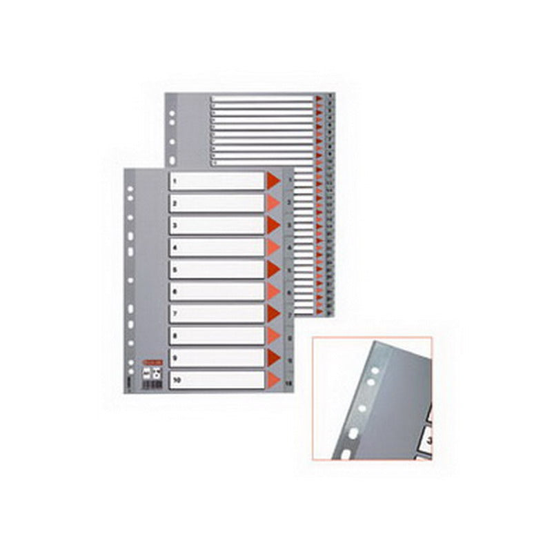 Skiriamieji lapai pagaminti iš ekologiškai švaraus ilgaamžio ir lankstaus plastiko - polipropilino. Lapai turi sutvirtintas segimo skyles. A4 formatas. Žymėjimas A-Z. 21 lapas. Pilkos spalvos.