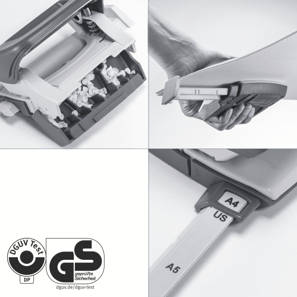 •Kreipiamoji juosta su aiškiomis formato žymomis tobulam popieriaus išlyginimui;