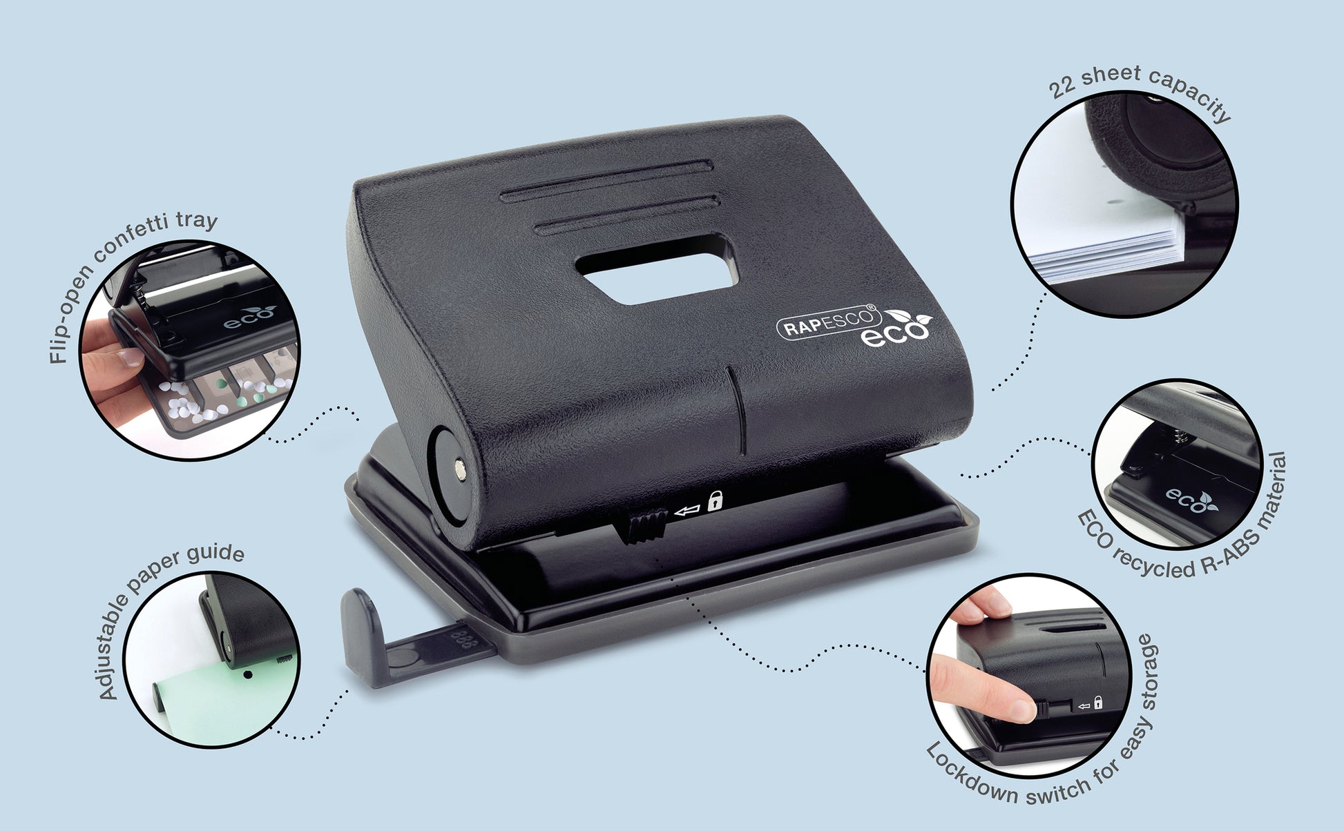 Skylmuša RAPESCO ECO Medium, 2 skylių, 22 lapų, juoda