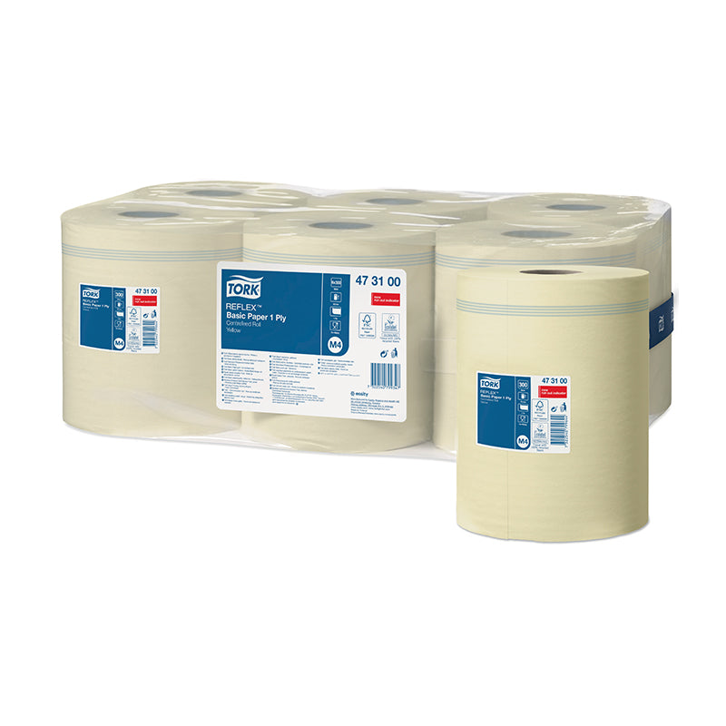 Šluostymo popierius TORK Reflex Basic M4 1-sl., 20,5 x 35 cm, 300 m/rul., geltona sp., 473100