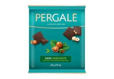 Šokoladas PERGALĖ, juodasis, su sveikais lazdynų riešutais, 200 g