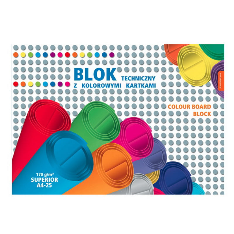 A4 formatas, 25 skirtingų spalvų lapai, storis 170 g/m2. Dėžėje 10 vnt.