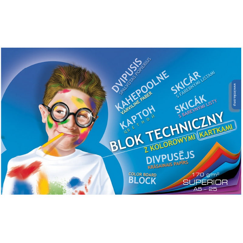 Spalvotas kartonas SUPERIOR KRESKA, A5, dvipusis, 170 g/m2, 25 spalvos