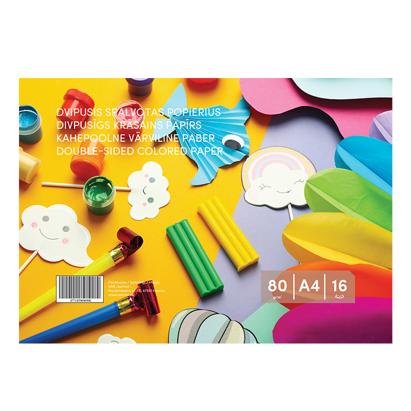 Spalvotas popierius, dvipusis, A4, 80 g/m², 16 lapų