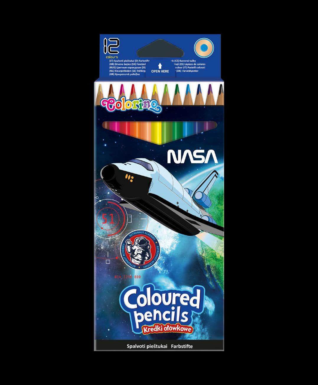 Spalvoti pieštukai 12 spalvų trikampiu korpusu Nasa