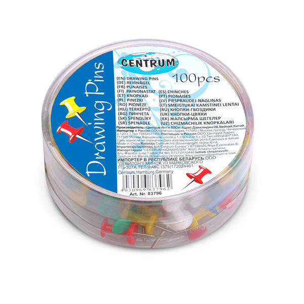 Spalvoti smeigtukai CENTRUM, spalvoti, (dėž.- 100 vnt.)