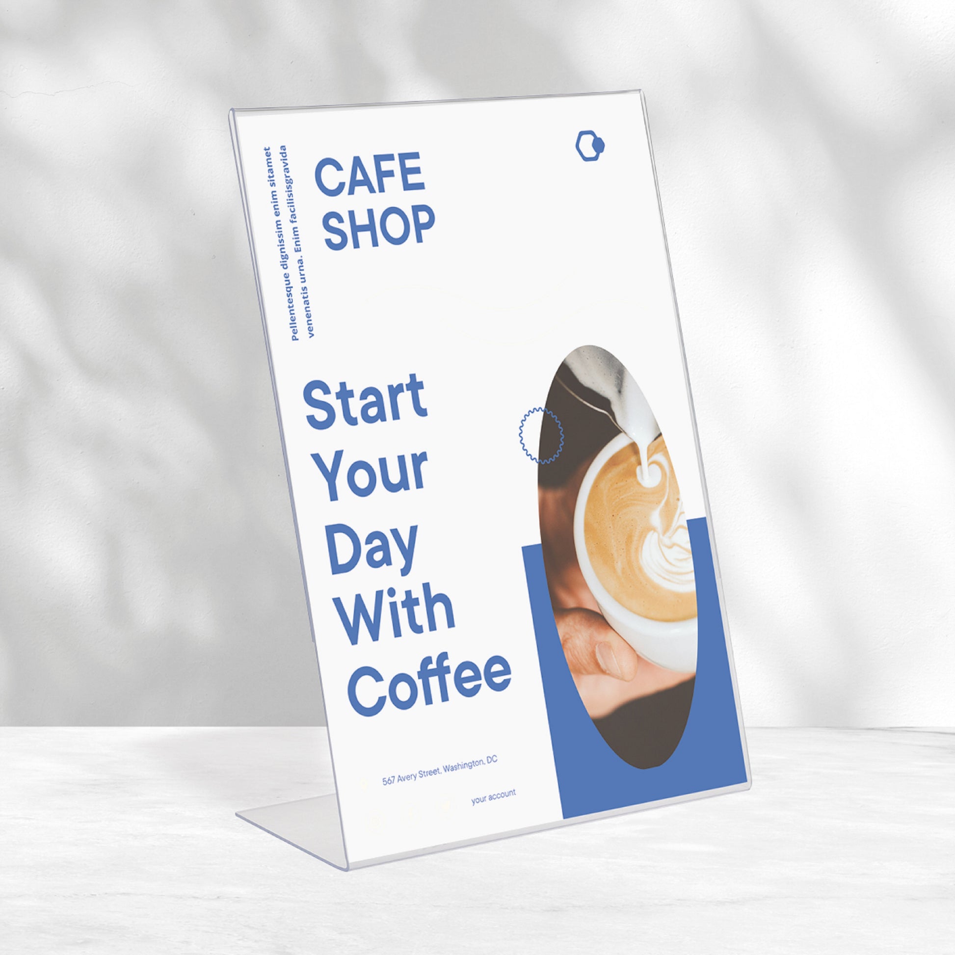 Storis 1,5 mm; pagamintas iš aukštos kokybės poliestireno; L formos; Skirtas reklamai, akcijoms; Skaidrus