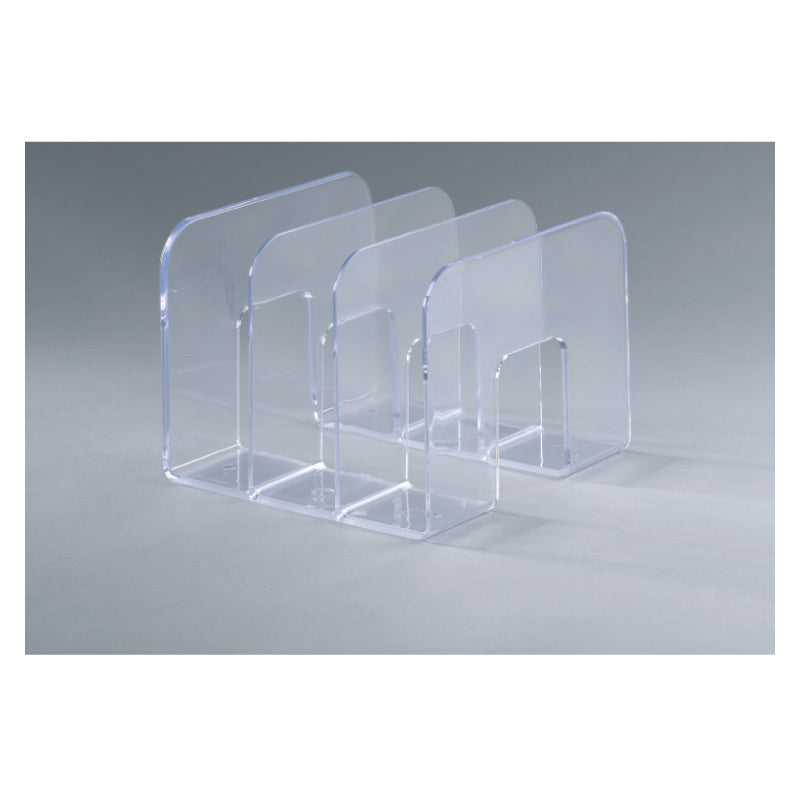 Dokumentų stovas. Skirtas katalogams, knygoms. 3 skyriai, plotis - 65 mm. Pagamintas iš plastiko. Matmenys :215 x 210 x 165 mm (L x W x H). Dėžutėje 8 vnt.