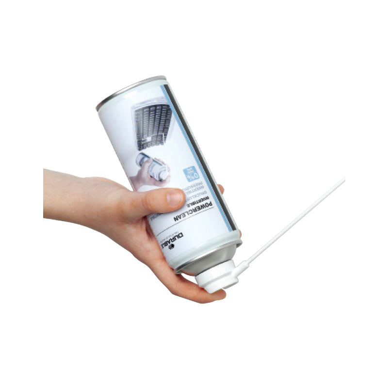 Suspausto oro valiklis DURABLE Powerclean su plastikiniu vamzdeliu. Talpa 200 ml. Galima naudoti apvertus. Skirtas dulkėms ir purvui valyti nuo sunkiai pasiekiamų elektroninių įrenginių vietų.