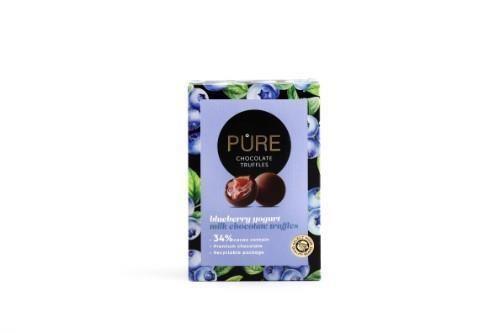 Tamsaus šokolado triufeliai PURE su mėlynių jogurto kremo įdaras 148g