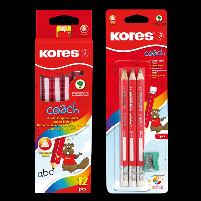 •Produktas: Kores Coach – tai aukštos kokybės didieji pieštukai su itin minkštu, storu 4 mm rašymo linija bei vardo lauku, kuriame galima užrašyti vaiko vardą, rekomenduojami ikimokyklinio ir pirmųjų metų mokykloje vaikams.