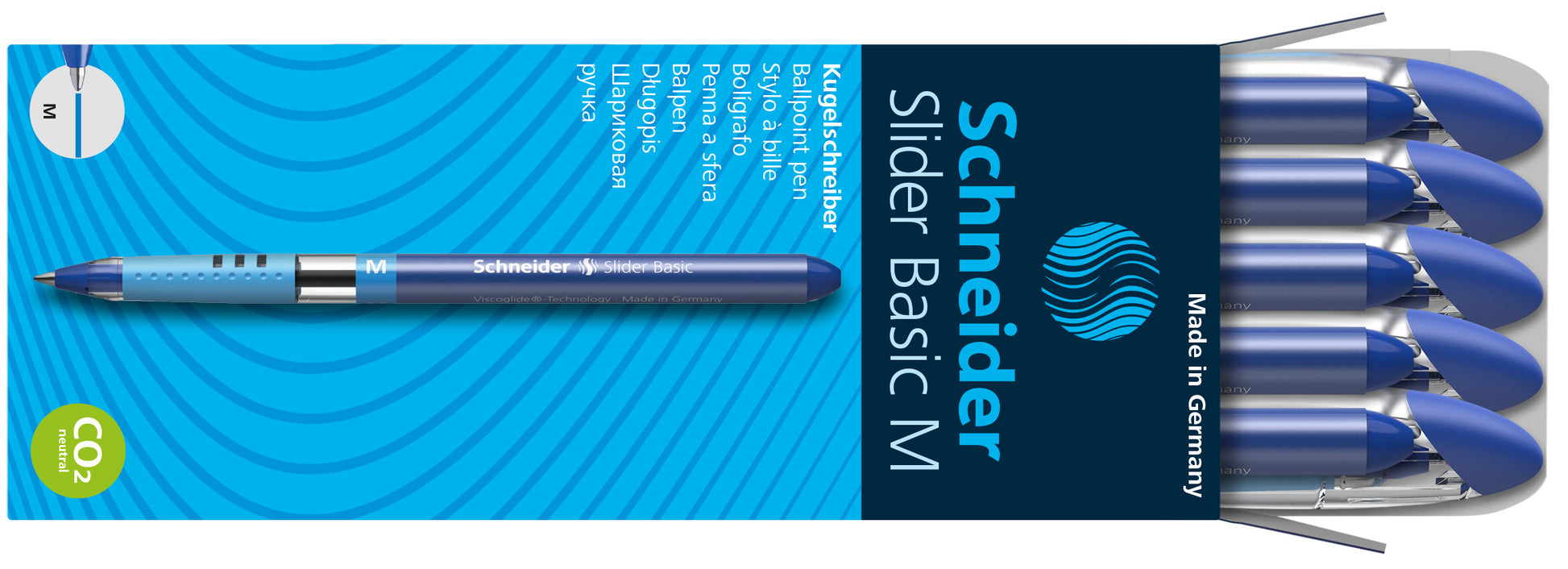 Produkto aprašymas:Rašiklis su Viscoglide® technologija, užtikrinančia itin sklandų rašymą. Rašymo spalva mėlyna. Vidutinis linijos plotis (M). Rašalas greitai džiūsta - net ant lygaus popieriaus - ir vėliau jį paryškinant nesutepa. Plonas dizainas su patraukliai dekoruotu permatomu korpusu ir klipsiniu dangteliu, kuris tvarkingai priglunda prie abiejų rašiklio galų. Gumuota rankenos zona užtikrina saugų laikymą, kad galėtumėte ramiai rašyti. Dėvėjimuisi atsparus nerūdijančiojo plieno antgalis užtikrina, kad didelis rašalo kiekis būtų visiškai išnaudotas ir neišsitrintų. Rašiklis ""Slider Basic"" gaminamas CO2 požiūriu neutraliai.