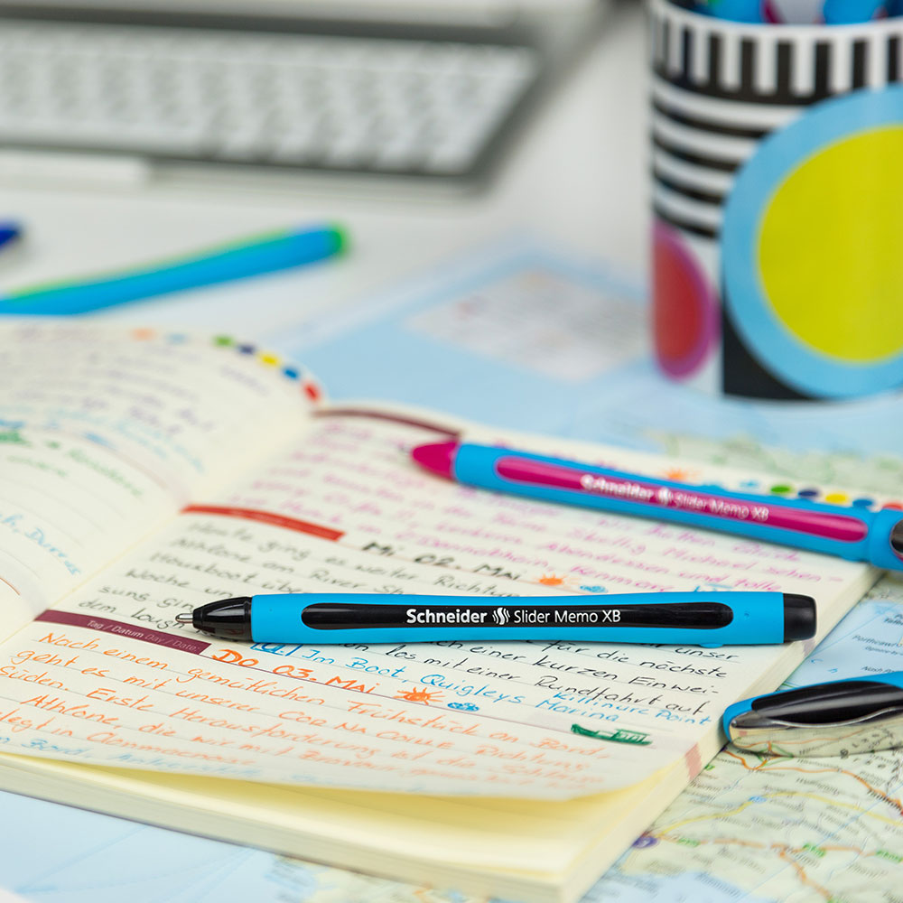 Produkto aprašymas:Rašiklis su Viscoglide® technologija, užtikrinančia itin sklandų rašymą.Ypač platus linijos plotis (XB). Rašalas greitai džiūsta - net ant lygaus popieriaus - ir vėliau jį paryškinant nesutepa. Atsparus vandeniui pagal rašalo standartą ISO 12757-2. Ergonomiškos formos, gausiai gumuotas korpusas sukurtas taip, kad būtų galima rašyti ramiai ir nevargintų rankos. Dangtelis turi tvirtą metalinį spaustuką ir tvarkingai užsideda ant abiejų rašiklio galų. Dėvėjimuisi atsparus nerūdijančiojo plieno antgalis užtikrina, kad didelis rašalo kiekis būtų visiškai išnaudotas ir nenusitrintų. Plunksnakotis ""Slider Memo XB"" gaminamas CO2 požiūriu neutraliu būdu."