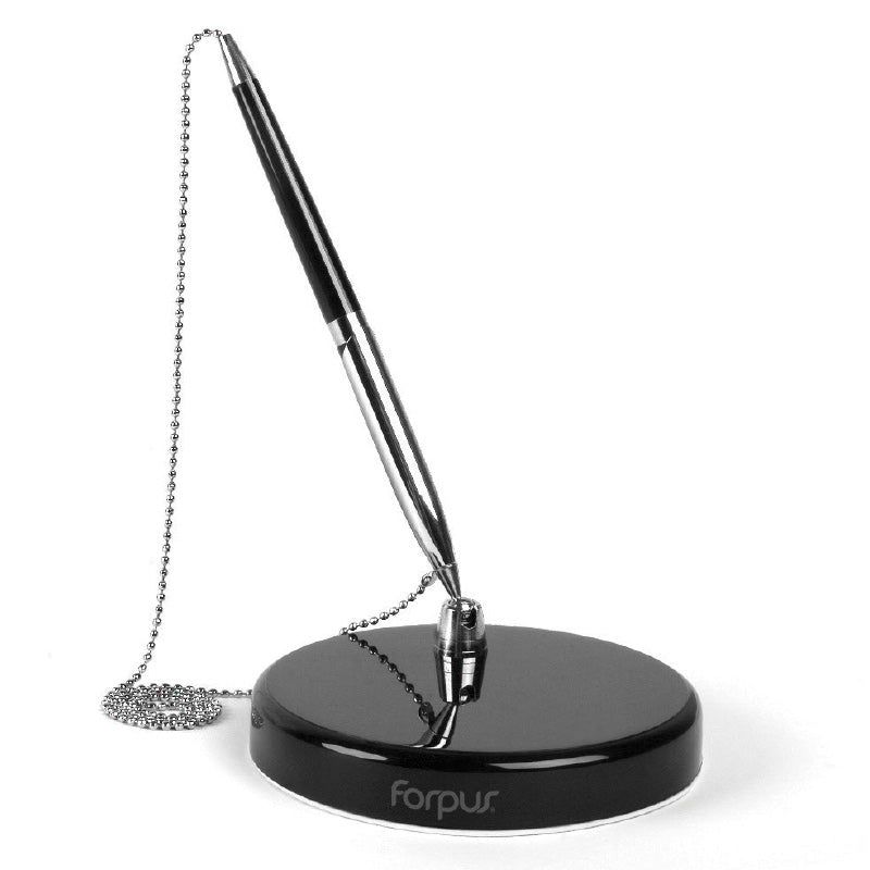 • Elegantiškas rašiklis su stoveliu ir ilga grandinėle iš tvirto metalo