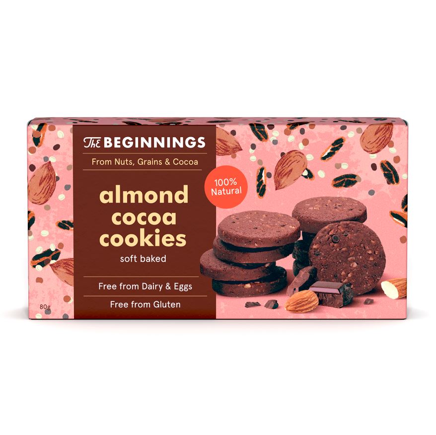 Veganiški migdoliniai sausainiai THE BEGINNINGS, su kakava, 80 g