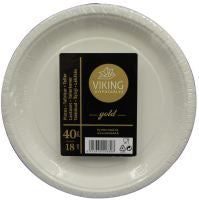 Vienkartinės lėkštės VIKING GOLD, popierinės, baltos, D 18 cm, 40 vnt.