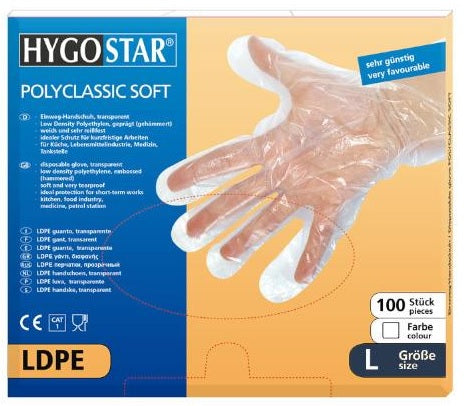 Vienkartinės pirštinės LDPE, L dydis, permatomos, 100 vnt.