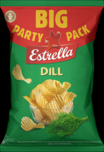 Vingiuoto pjaustymo bulvių traškučiai ESTRELLA su krapais, 250 g