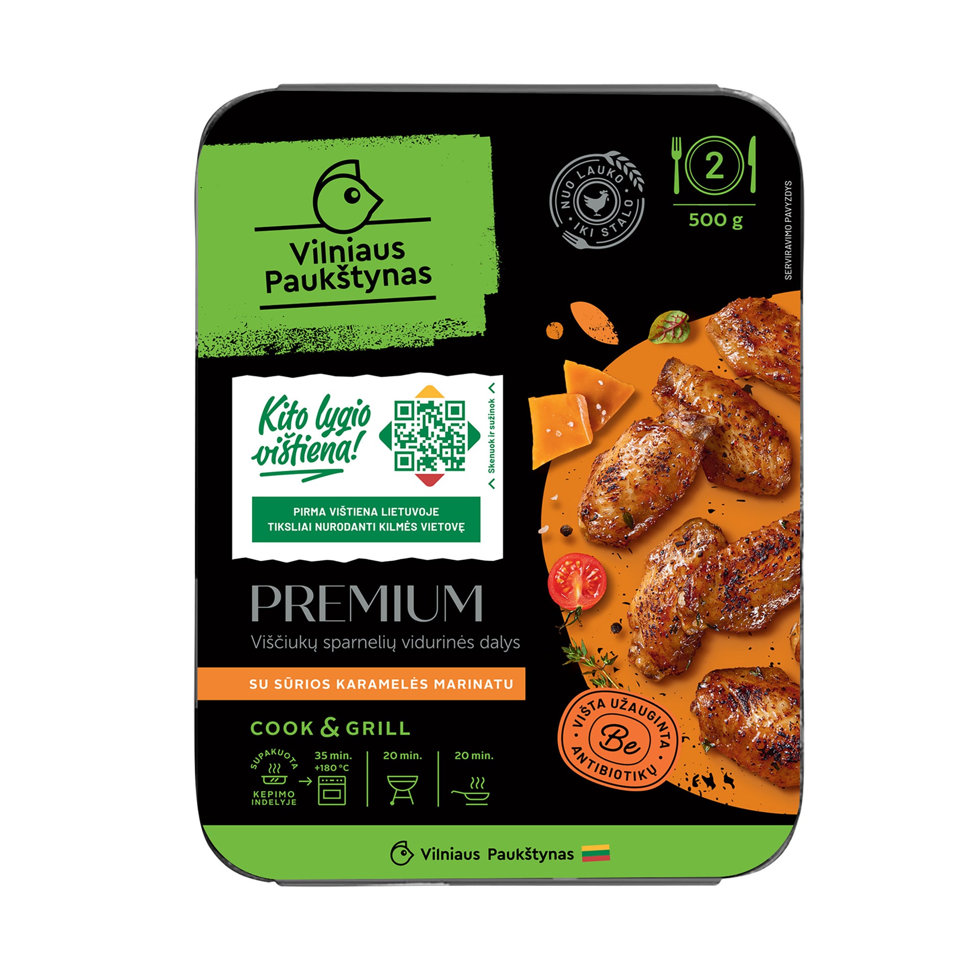 Viščiukų vidurinės sparnelių dalys su sūrios karamelės marinatu, 500g