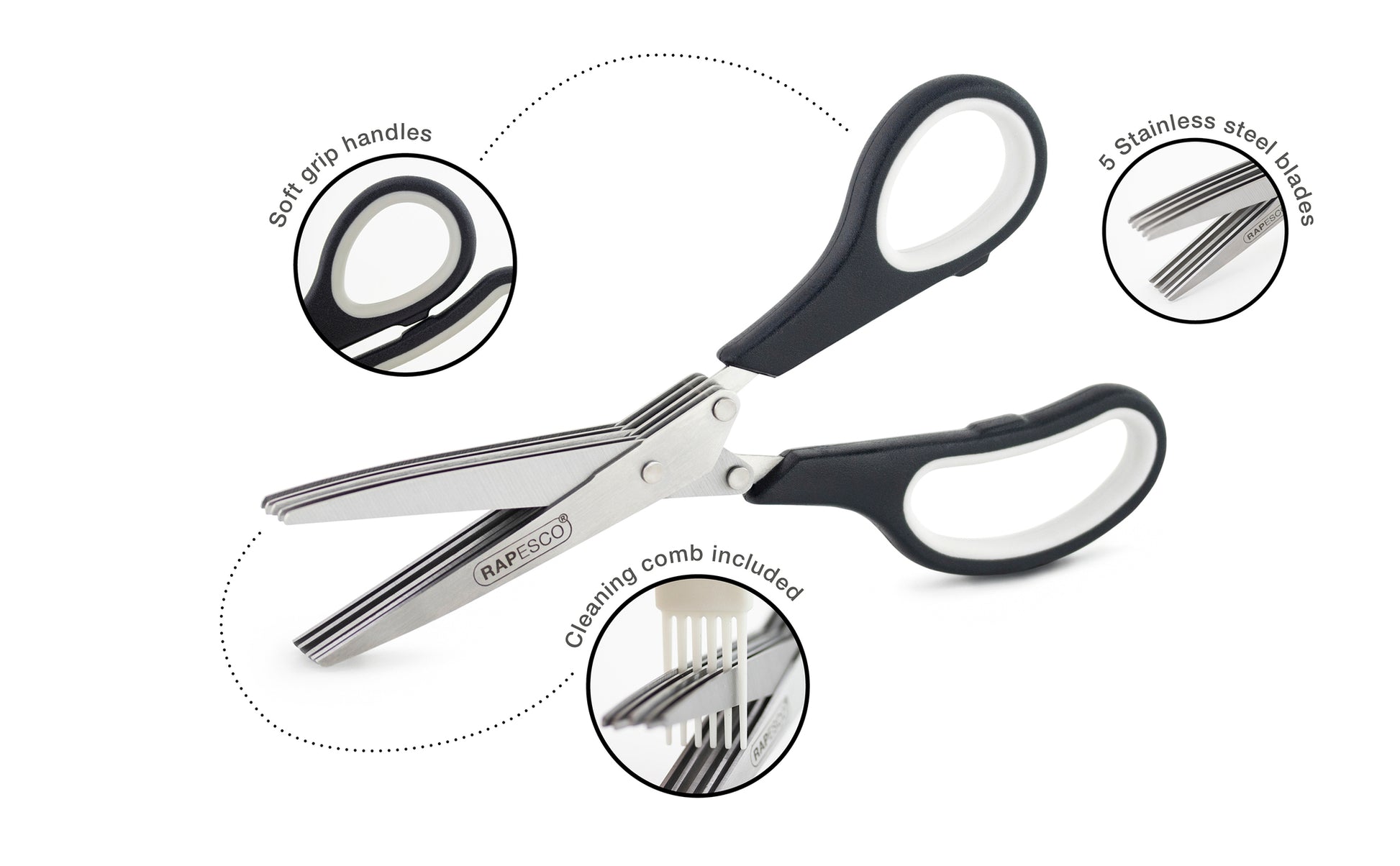 •Smulkinimo žirklės su 5 patvariais nerūdijančio plieno ašmenimis;